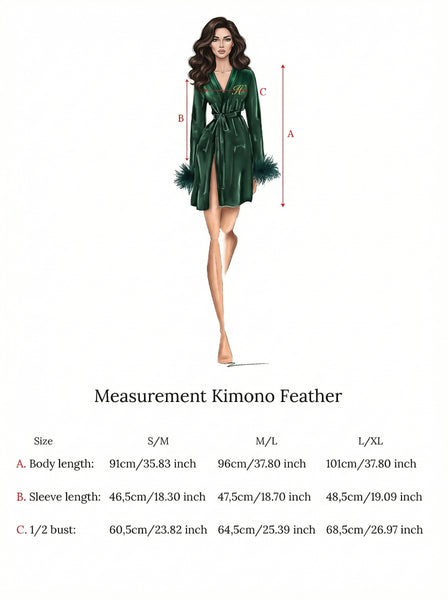 • El Kimono Feather Esmeralda Green de la "Holiday Collection" de Rose Bertram es súper elegante. ¡La tela es suave y las plumas le dan al kimono ese aspecto extra chic para sentirse cómodo en casa y lucir fabuloso al mismo tiempo! Haga que su artículo sea único personalizándolo con nuestros encantadores colores de bordado. Recuerde que esta 'Colección Navideña' tiene disponibilidad limitada, por lo que le recomendamos que compre sus favoritos antes que nadie. Xoxo Rose Bertram