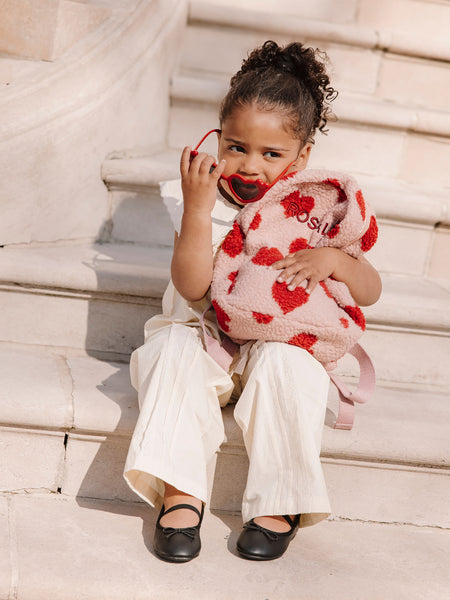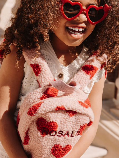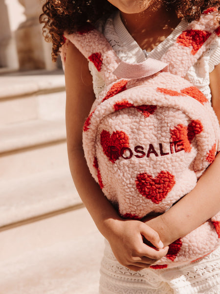 • Nuestra adorable mochila con estampado de corazones está hecha de un tejido teddy ultrasuave y es perfecta para todas las pequeñas aventuras. Ya sea una cita para jugar, una salida con mamá o el camino a la guardería, ¡cabe todo lo esencial! Las correas ajustables hacen que la mochila crezca con el niño y siempre se lleve con comodidad. Personaliza la mochila con el nombre de tu peque. Cada mochila está bordada con mucho amor en nuestro propio atelier, utilizando los hilos de bordar más finos. ¡Un accesorio práctico y encantador que completa cualquier conjunto!