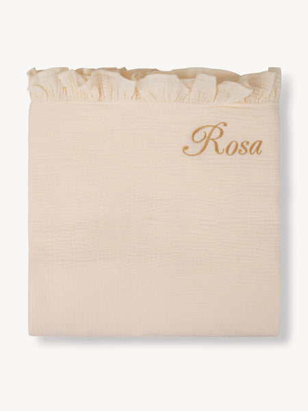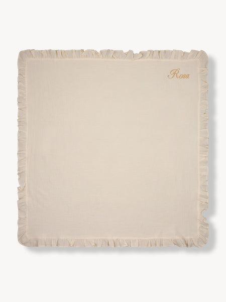 • Naast dat de hydrofiele ruffle doek een echte eye-cather is, is deze ook de answer to everything! Als extra dekentje in de kinderwagen, voor over je schouder om boertjes mee op te vangen of een handdoek na een warm badje. En hoe leuk is deze gepersonaliseerde hydrofiele Ruffle doek gemaakt van heerlijk zacht katoen: Ideaal voor jouw newborn baby. Maak hem nog persoonlijker door deze te laten personaliseren met de allermooiste borduurgaren. Ben je, net als wij, verliefd geworden op de hydrofieledoek Maak de set dan helemaal compleet met de gepersonaliseerde speendoekjes.