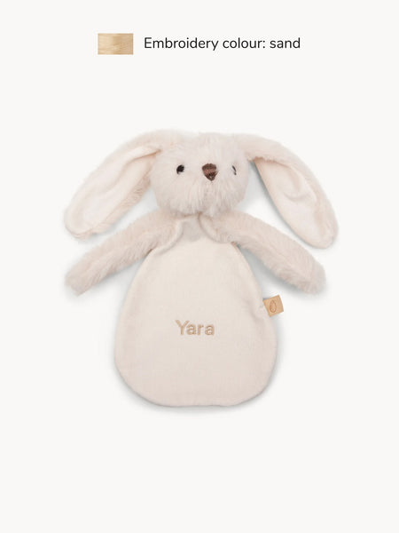 • Let's snuggle! Dit knuffeldoekje is superzacht en het perfecte kroelvriendje voor de allerkleinsten. Cute detail: laat het konijntje personaliseren met de naam van je baby. Dit gebeurt met liefde in ons eigen atelier. Je bewaart het knuffeldoekje voor altijd als blijvende herinnering. Dit maakt het ook een uniek (kraam)cadeau om te geven! Verkrijgbaar in verschillende kleuren.