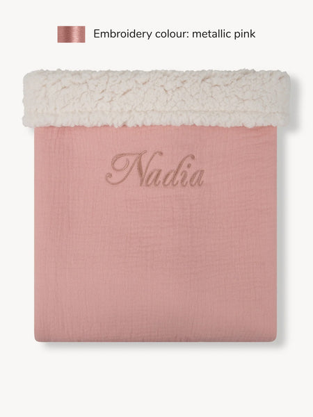 • Hush little baby want ons warme dekentje gemaakt van sherpa muslin is een must-have in jouw babykamer! Dit heerlijk zachte dekentje geeft door de Teddy-stof extra warmte en comfort aan jouw kleintje: Ideaal voor pasgeboren baby's. Je maakt de Teddy deken extra speciaal, door deze te personaliseren met de naam van jouw baby. Door de afmeting past deze Teddy deken perfect in een wiegje of ledikantje, maar is natuurlijk ook te gebruiken in een box of kinderwagen.