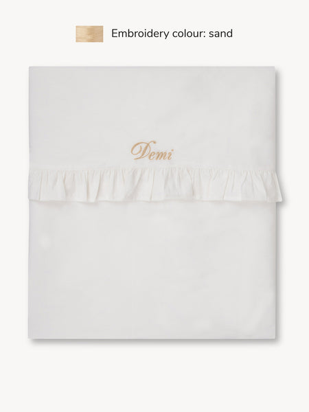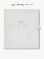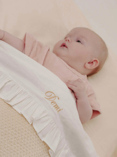 • Ein guter Schlaf ist alles! Dieses personalisierte Bettlaken mit verträumten klassischen Rüschen ist nicht nur wunderschön, auch das weiche Material macht es buchstäblich verträumt. Und das ist noch nicht alles: Das Rüschenbettlaken aus 100% Baumwolle kann mit dem Namen deines Neugeborenen personalisiert werden. Die Größe des Lakens ist 140x110 cm und eignet sich daher perfekt für ein Kinderbett und verleiht dem Babyzimmer ein besonders träumerisches Detail. Hast du dich, wie wir, in das Rüschenbettlaken verliebt? Dann vervollständige das Set mit der Strickdecke, die in verschiedenen Farben erhältlich ist.