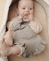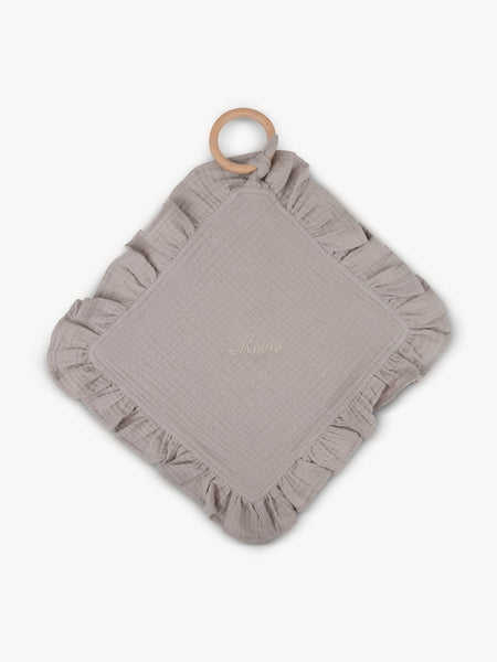 • Deine Baby-Essentials: Wie praktisch ist dieses Mull-Schnullertuch! Ein Beißring, ein Schnuller und eine Mullwindel. Dieses Schnullertuch aus 100 % Baumwolle ist ideal zum Beißen und Spielen. Das Tuch hat auch eine praktische Schlaufe, um einen Schnuller oder Beißring zu befestigen. Die klassischen Rüschen am Schnullertuch machen es noch niedlicher, und du kannst es noch persönlicher gestalten, indem du den Namen deines Kindes darauf angibst. Hast du dich, wie wir, in das Mull-Schnullertuch verliebt? Dann vervollständige das Set mit den Rüschen-Mullwindeln in kleinen und großen Größen.