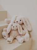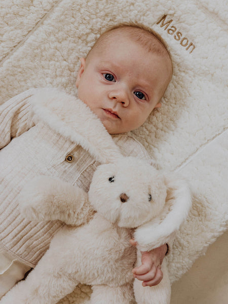 Triff den ersten besten Freund deines kleinen Lieblings! Dieser superweiche Hase ist perfekt für endlose, warme Umarmungen. Niedliches Detail: Personalisiere den Hasen mit dem Namen deines Babys. Dies wird mit Liebe in unserem eigenen Atelier gemacht. Du behältst den Hasen für immer als bleibende Erinnerung. Dies macht ihn auch zu einem einzigartigen Geschenk (zur Geburt)! In verschiedenen Farben und Größen erhältlich.