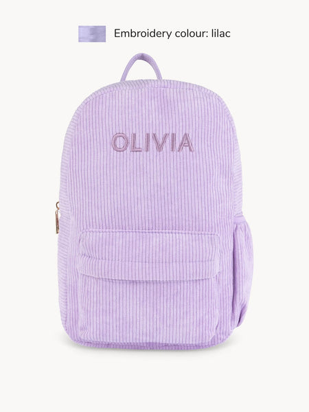 • Dieser fliederfarbene Ripp-Rucksack vervollständigt das Outfit deines kleinen Lieblings perfekt! Durch die verschiedenen Fächer kann dein Kind alles einfach verstauen. Das große Fach eignet sich perfekt für eine Brotdose für die Schule oder um Spielzeug zu einer Spielverabredung mitzunehmen. Die Schultergurte sind verstellbar, so dass der Rucksack immer perfekt sitzt. Mach den Rucksack noch persönlicher, indem du ihn mit dem Namen deines Kindes personalisierst. In verschiedenen Farben erhältlich.