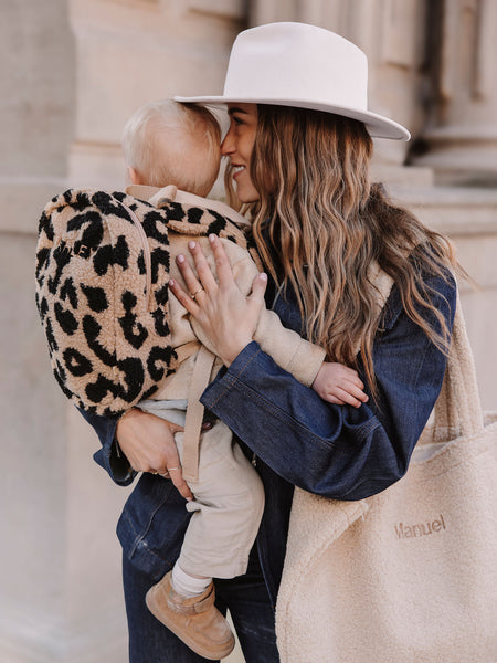 • Unser niedlicher Rucksack mit Leopardenmuster ist aus superweichem Teddy-Stoff gefertigt und perfekt für alle kleinen Abenteuer. Ob Spielverabredung, Ausflug mit Mama oder ein Tag in der Kita – alle wichtigen Dinge finden darin Platz! Dank der verstellbaren Schulterriemen wächst der Rucksack mit und sitzt immer bequem. Personalisiere den Rucksack mit dem Namen deines kleinen Schatzes. Jeder Rucksack wird mit viel Liebe in unserem eigenen Atelier mit den schönsten Stickgarnen bestickt. Ein praktisches und bezauberndes Accessoire, das jedes Outfit perfekt abrundet!