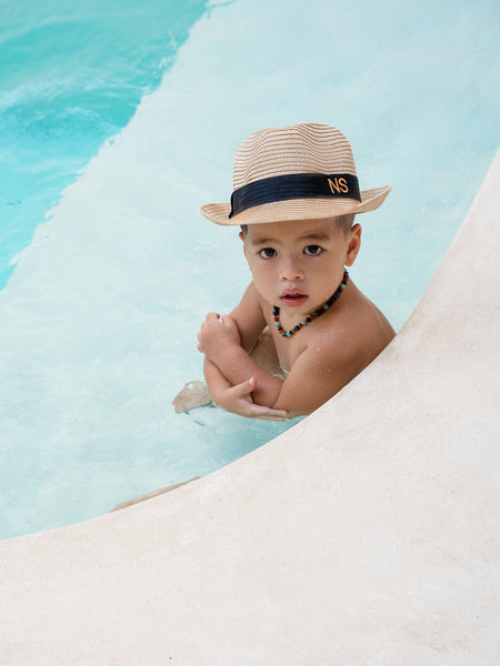 • Das Sommer-Must-Have, das im Sommeroutfit und Reisekoffer Ihres Kindes nicht fehlen darf! Der Le Olive Strohhut Deluxe Kids ist mit einem schönen, klassischen Riemen versehen, den Sie mit Ihren eigenen Initialen personalisieren können. So machen Sie den Strohhut noch persönlicher und einzigartiger. Einzigartig ist auch die Möglichkeit, den Hut auf die richtige Größe einzustellen. Das geht ganz einfach mit dem Kordelzug auf der Innenseite. Sie können aus vier verschiedenen Farben von Mützen mit verschiedenfarbigen Bändern wählen, sodass dieses niedliche Accessoire an einem Strandtag oder einem wunderbaren Sommertag immer zum Outfit passt! Machen Sie zusammen noch mehr Eindruck, indem Sie die Strohhüte aufeinander abstimmen, denn wir bieten sie auch in Erwachsenengrößen an!